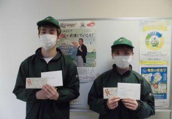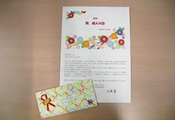 1月10日(月)の成人の日に合わせ、2022年に成人を迎える社員39人に対して、各営業所で記念品の贈呈を行いました。例年、当社では新卒で入社した新成人にお祝いのメッセージを送ってきましたが、今年は新卒以外の全正社員を対象としました。新成人となった社員には社長からのメッセージが封書で贈られ、「本を読むことで知識を得、教養を身に付けてほしい」との思いを込めて図書カードも贈られました。