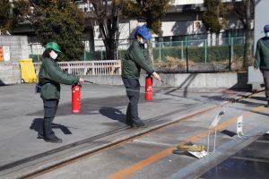 2月17日(木)、桶川流通センターと本社合同で、避難・消火訓練を実施しました。コロナ禍により参加人数は制限し、防災隊の消火班班長や安全衛生委員など、15人程度の規模で行いました。
