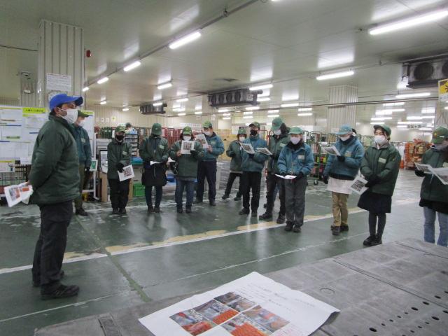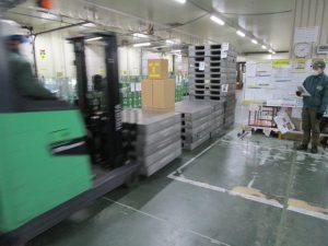 2月22日(火)に、篠栗冷蔵流通センターにて、事故・労災をゼロ件にし、フォークリフトの危険性と乗務者の視野を理解してもらうことを目的に、現場作業と事務の社員約25人を対象に「フォークリフト危険講習会」を実施しました。