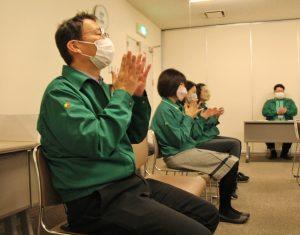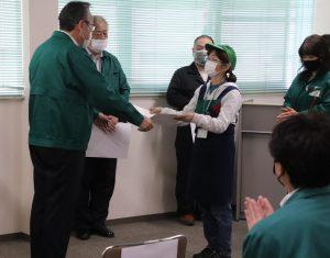 表彰された社員からは「入社当時、物流業務が分からない私を助けてくれた皆さんのおかげでここまでこられました。」「あっという間の20年でした。これからも、頑張っていきたいです。」「上司・同僚・取引先の方など、いろいろな人に支えられてきました。一層努力していきます。」「11年前の東日本大震災で、物資がない中、コープの店舗に行くと品揃えがすごかったことを覚えています。そんな事業に少しでも携われていることを、誇りに思っています。」「いろいろな業務に携わらせてもらいました。これから先も貢献していけるように頑張りたいです。」など、働く仲間への感謝、仕事に対しての誇りなど、さまざまな想いを語りました。