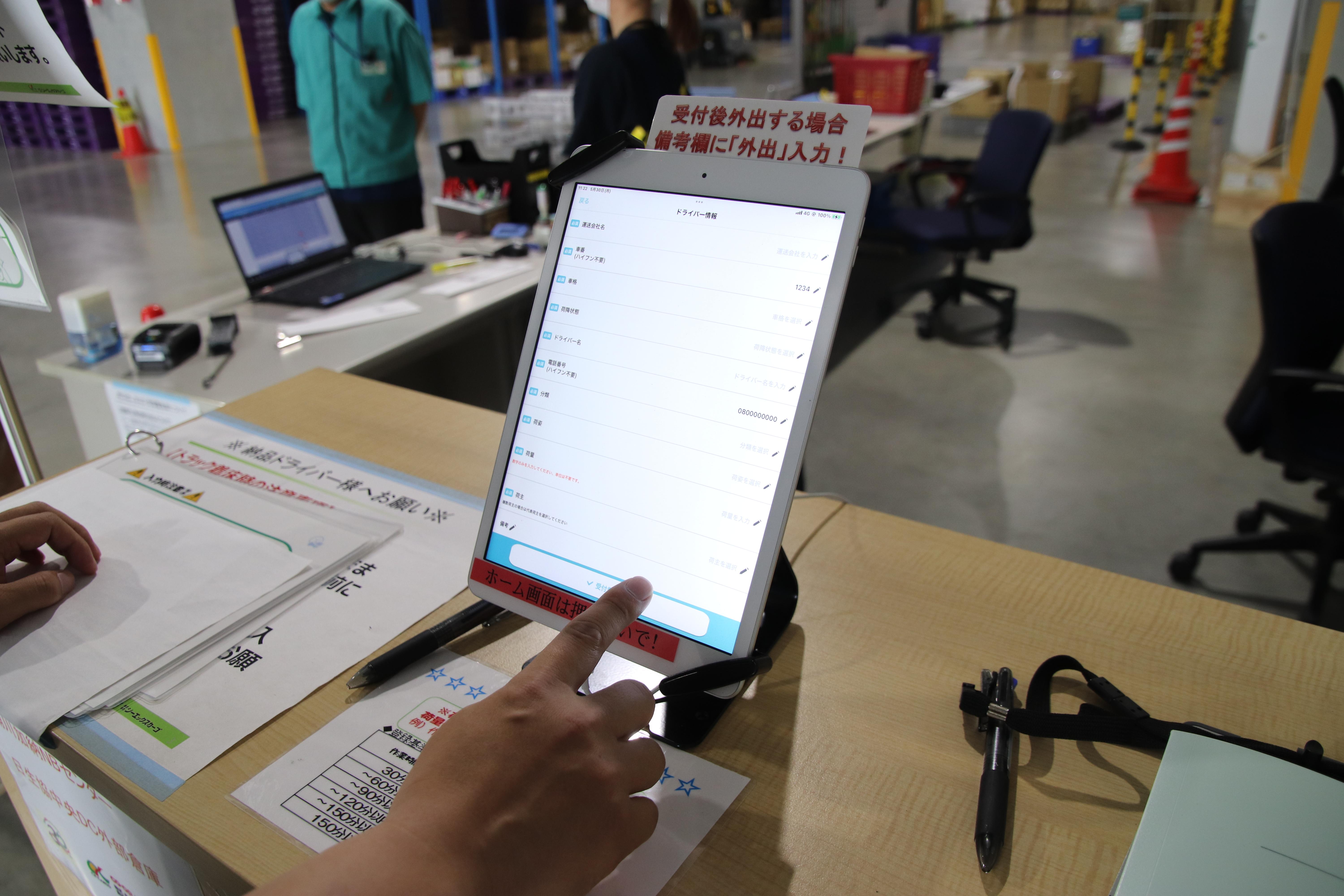 入庫受付にあるタブレット