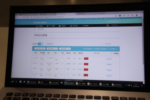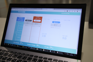 このシステムは、荷主または運送会社にインターネット経由で入庫予定時間や荷下ろしの方法などを事前登録してもらい、その時間に合わせてタブレットで受付後、指示されたバースに着床、荷下ろしを行うものです。現場では予約や入庫の状況がパソコンで確認できます。