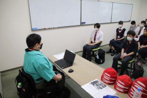 質疑応答では「どのような人がこの仕事に向いていますか?」「慣れるまでにどのくらいの期間が必要ですか?」「なぜこの職場を選んだのですか?」と、生徒から積極的にさまざまな質問がありました。生徒たちは皆熱心に話を聞き、現場の様子にも真剣に見入っていました。同校を対象としたこの見学会は、7月13日(水)に2回目を開催します。