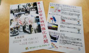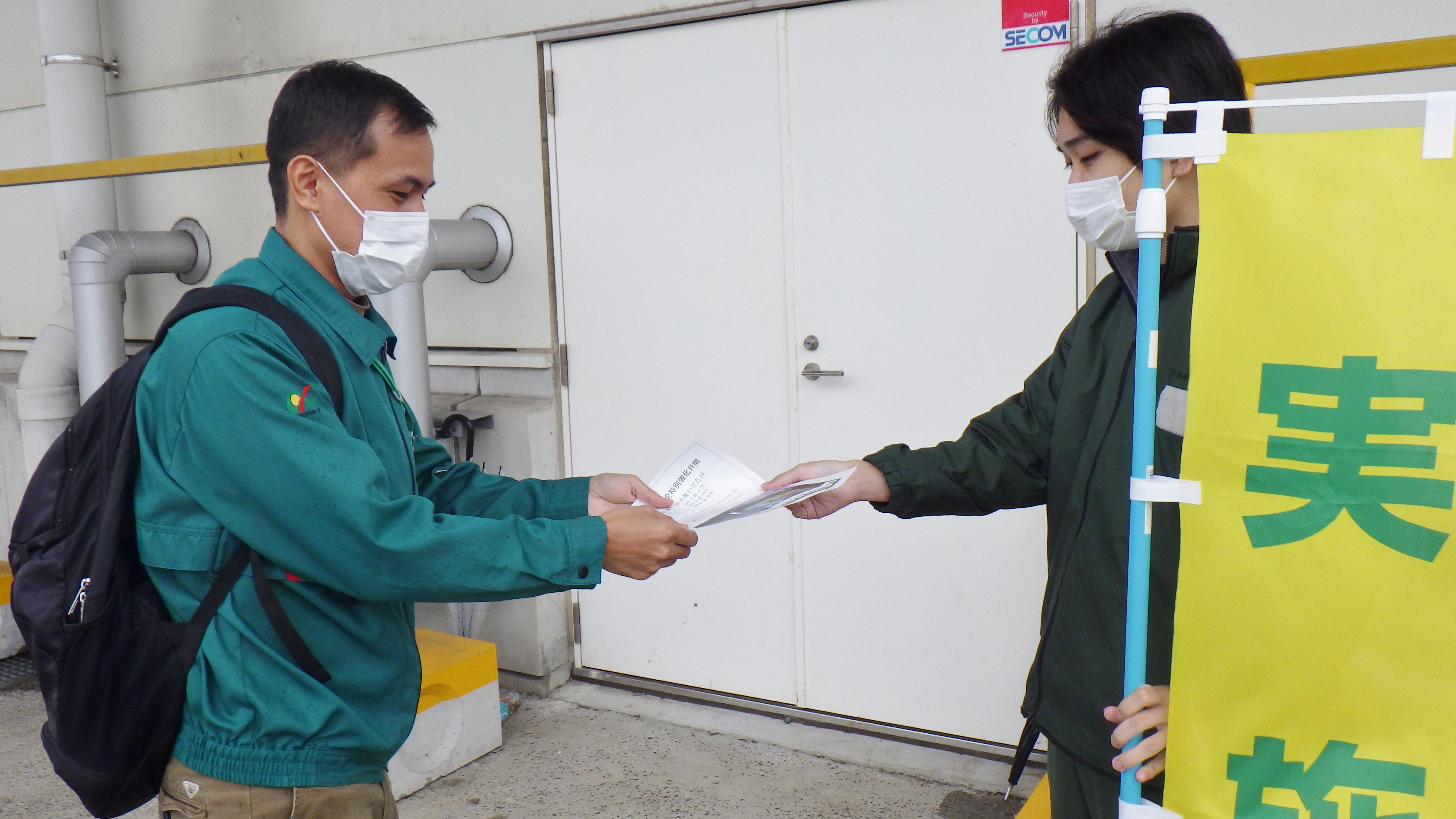 | 印西冷凍流通センターでは、交通安全特別強化月間の取り組み期間中に、過去の事故を風化させないため、社員が作成した交通安全に関するチラシを配布しています。このチラシは2種類作成し、9月13日(火)からと、10月5日(水)からの2回に分け、朝終礼時や出退勤時間に合わせて、庫内や駐車場で配布を行っています。 管理者は、「事故を発生させてしまうことで、事故にあわれた方、事故を起こしてしまった方、当事者を送り出す方、帰りを待っている方、みんなが悲しくつらい思いをします。そのようなことが無いように、改めてこのチラシを見て、思い返してほしいと思います。」と話しています。 |