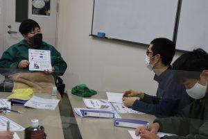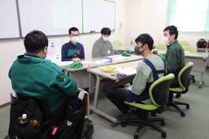 講習ではジョブコーチが講師となり、主に現場で触れるマテハンについてや、安全に仕事をするための講習を実施しました。立候補で決まったリーダーが進行の補助を行い、マテハンの名前の確認とテスト、フォークリフトの死角や乗務者への具体的な声掛けなどを学びました。また、今自分に足りないと思ったこと・どうしたら良くなると思うかを各自で考えました。