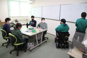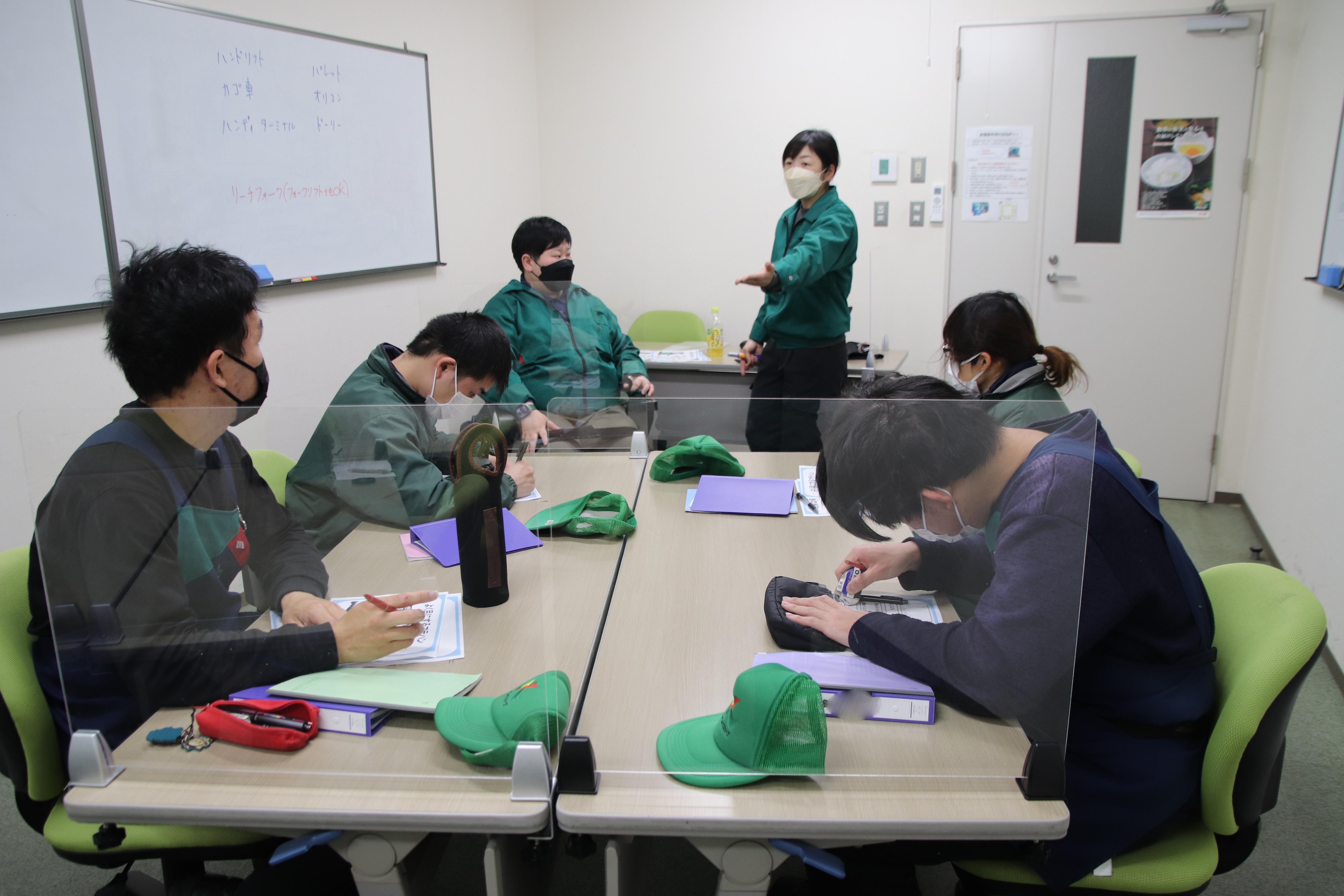 1月25日(水)、31日(火)の2日間に分けて、本社にて、桶川流通センターで働く障がいのある社員を対象とした「第2回チャレンジプログラム」を実施しました。チャレンジプログラムは以前開催していた「はたらくためのべんきょうかい」を発展させたもので、「基礎チーム(ルールやマナーなどを身に付ける)」「強化チーム(選抜制で、人財育成する)」に分かれ、年に3回の講習などを通してそれぞれのプログラムを行います。今回の開催は強化チーム(8人)で、4人ずつA・Bチームに分かれ、定期的な評価をもとに競い合います。これは働くモチベーションアップと、自身に不足しているものに向き合い、共育を行うことが目的です。