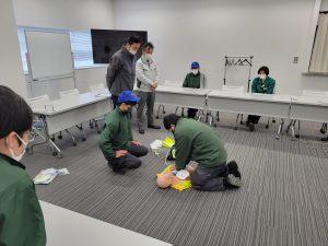 参加した社員からは、「AEDの使用がメインかと思っていたが、胸骨圧迫にかける時間が多くを占めるということが理解できた。」「胸骨圧迫が想像していたよりも力が必要で疲れた。救護の際は、周りに声を掛けて協力を得ることが重要だと思った。」という声がありました。