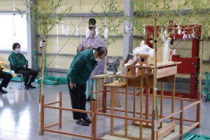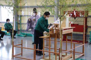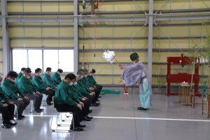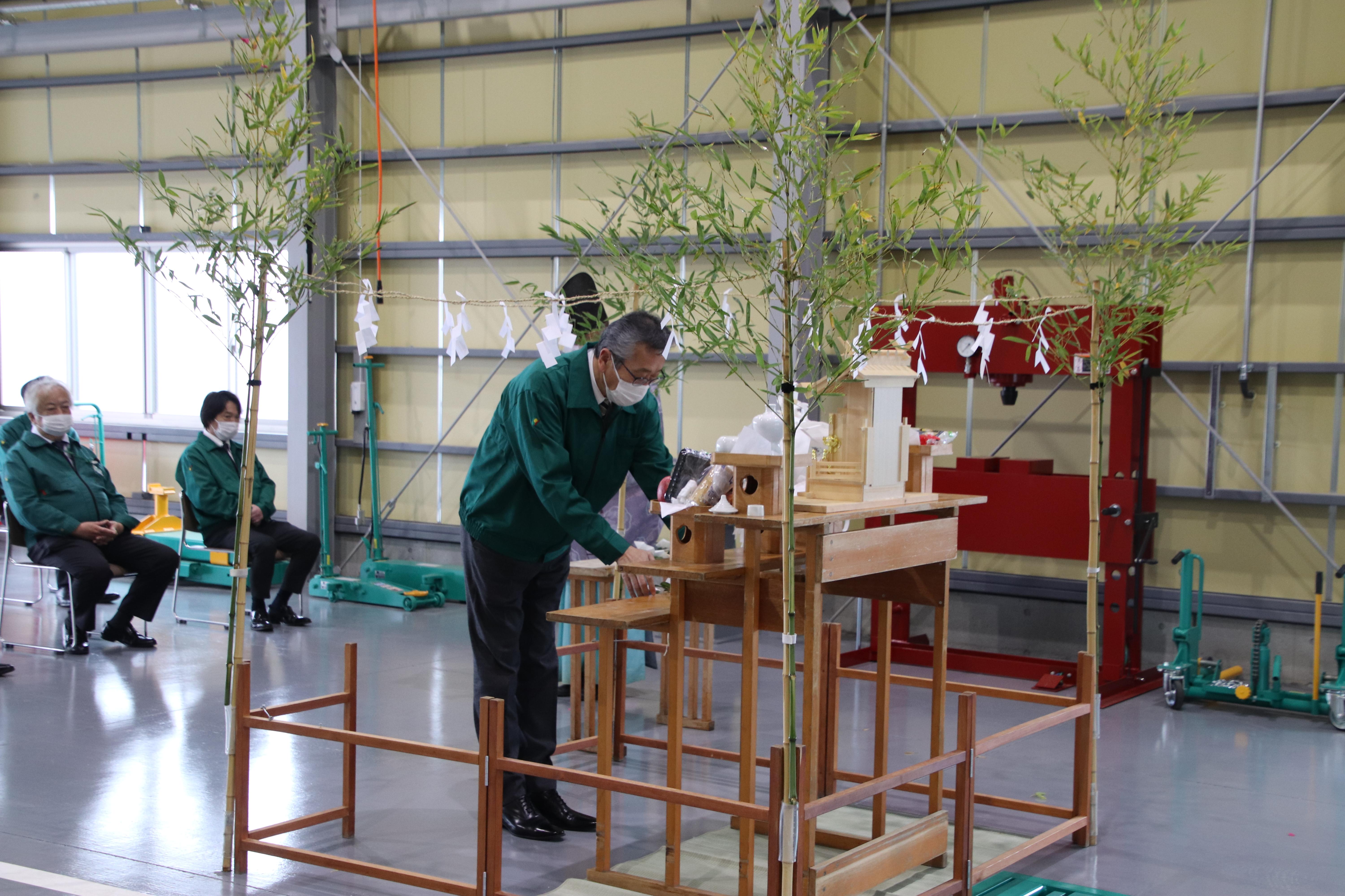 3月25日(土)、当社初となる自社整備工場(埼玉県久喜市)が完成し、竣工式を執り行いました。当日は、当社役員・社員が列席し、神事が執り行われました。
