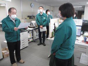 3月20日(月)、小野営業所にて永年勤続20年表彰式を行いました。当日は、専務が営業所に足を運び、表彰者に直接感謝の言葉と表彰状を手渡しました。