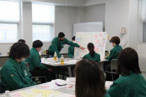3月24日(金)と3月27日(月)の2日に分けて、野田流通センターと尾道流通センターにて、34人の新卒入社1年目の社員を対象に、「1年目振り返り研修」を実施しました。コロナ禍の影響で、入社式やこれまでの研修はリモートで実施していましたが、野田流通センターには関東エリアの社員、尾道流通センターには関東エリア以外の社員が、それぞれ初めて一堂に会することができました。
