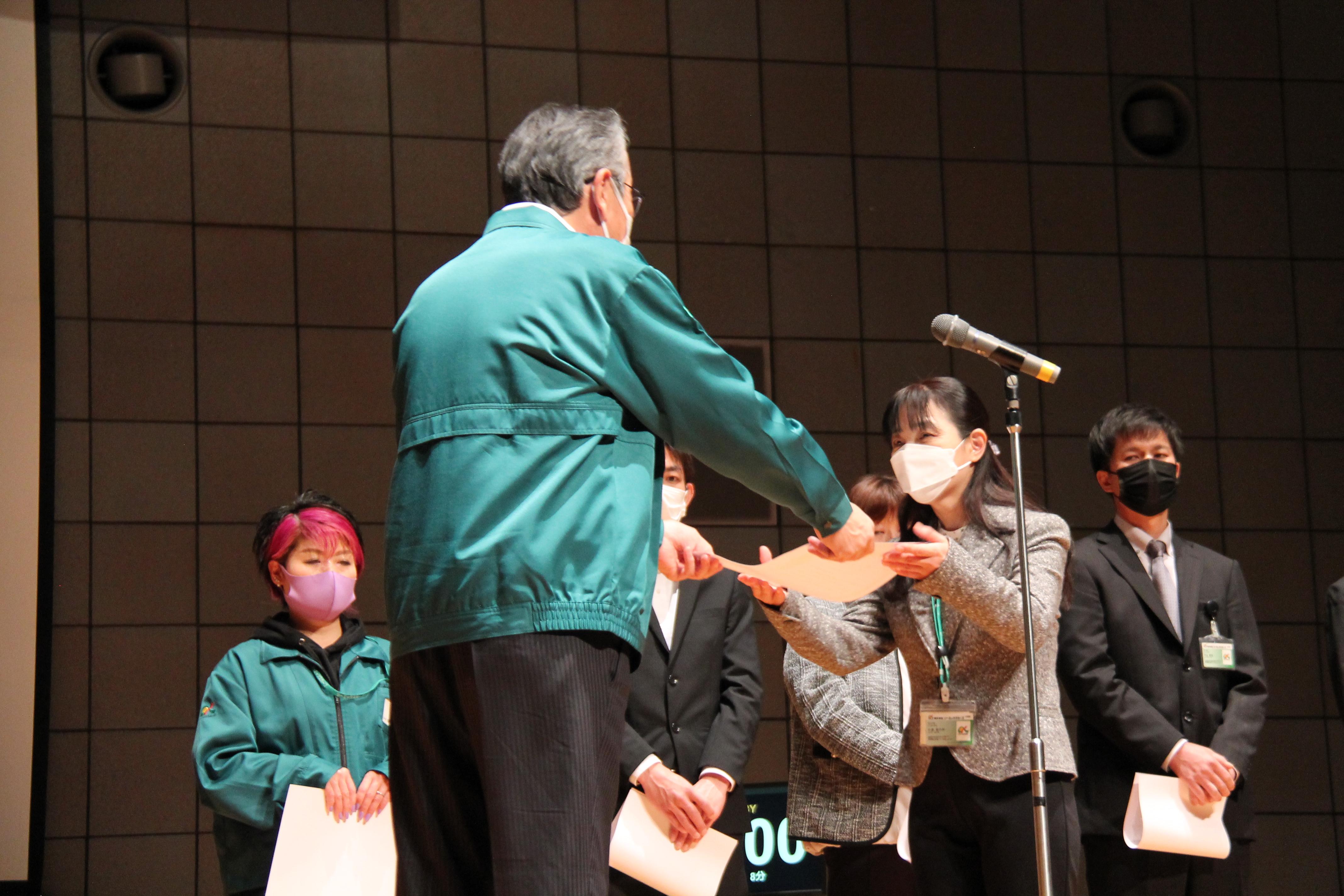 3月30日(木)、埼玉県県民活動総合センター(埼玉県北足立郡伊奈町)で開催した第17回カーゴカップ成果発表大会と共に「カーゴビジョン表彰2022」を行い、シーエックスカーゴの経営理念・ビジョン(貢献・信頼・誇り・挑戦)に沿った活動をした個人、6人が表彰を受けました。都合により参加できなかった2人の表彰対象者については、別途各営業所にて表彰式を行う予定です。