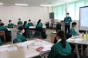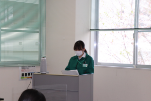 研修では基本的なビジネスマナーを勉強し、取締役からの講話を受けてグループワークを行い当社の使命や事業について理解を深め、また先輩社員と交流して自身のキャリア形成についてイメージを深めるなど、これから一緒に働いていく同期と共に、社会人としての気持ちを新たにしました。最終日には、研修のまとめとして「一年後のありたい姿」を各自設定し、一人ひとりプレゼンテーションしました。