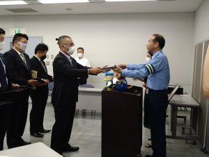 | 7月14日(金)、兵庫県警察本部にて優秀安全運転事業所表彰式が行われ、小野営業所輸送課が銀賞を受賞しました。 この賞は、令和5年度第一期(1月~4月までの間)に乗務員の運転記録証明書を一括申請した事業所の中で、過去一年間職場が一丸となって積極的に交通安全に取り組み、交通事故・違反防止に優秀な成績を収めた企業に送られるもので、成績に応じて、金賞・銀賞・銅賞の3賞に分けられます。 表彰式に参加した社員は「小野輸送課では、2020年に同表彰の金賞を受賞させて頂きましたが、その後2022年に道交法違反を業務中に発生させてしまい、無違反記録を2862日でストップさせる残念な結果となりました。しかし、今回表彰頂いた銀賞という結果を機に、改めて一日一日の無事故・無違反を積み重ね、一日無事故を大切に日頃から安全運転・法令順守を意識して、次回は金賞受賞できるよう小野輸送課全員で取り組んでまいります」と、気持ちを新たに引き締めました。 |