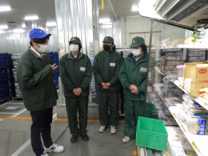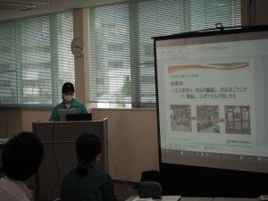 研修は「3カ月で学んできたことを整理し、発表を通じて理解度を確認する」、「職場のルールや手順の再共育を実施し、安全行動や品質レベルを上げる」、「上司や先輩社員との交流を通し、今後求められる姿を理解し具体的な行動を計画する」ことを目的とし、それに沿って発表や庫内見学、先輩社員との交流などを行いました。また、新入社員研修で作成した「一年後のありたい姿」への到達点の確認も行いました。発表資料は先輩と一緒に作り上げており、今回の研修を通じて先輩との関係が深まったようです。