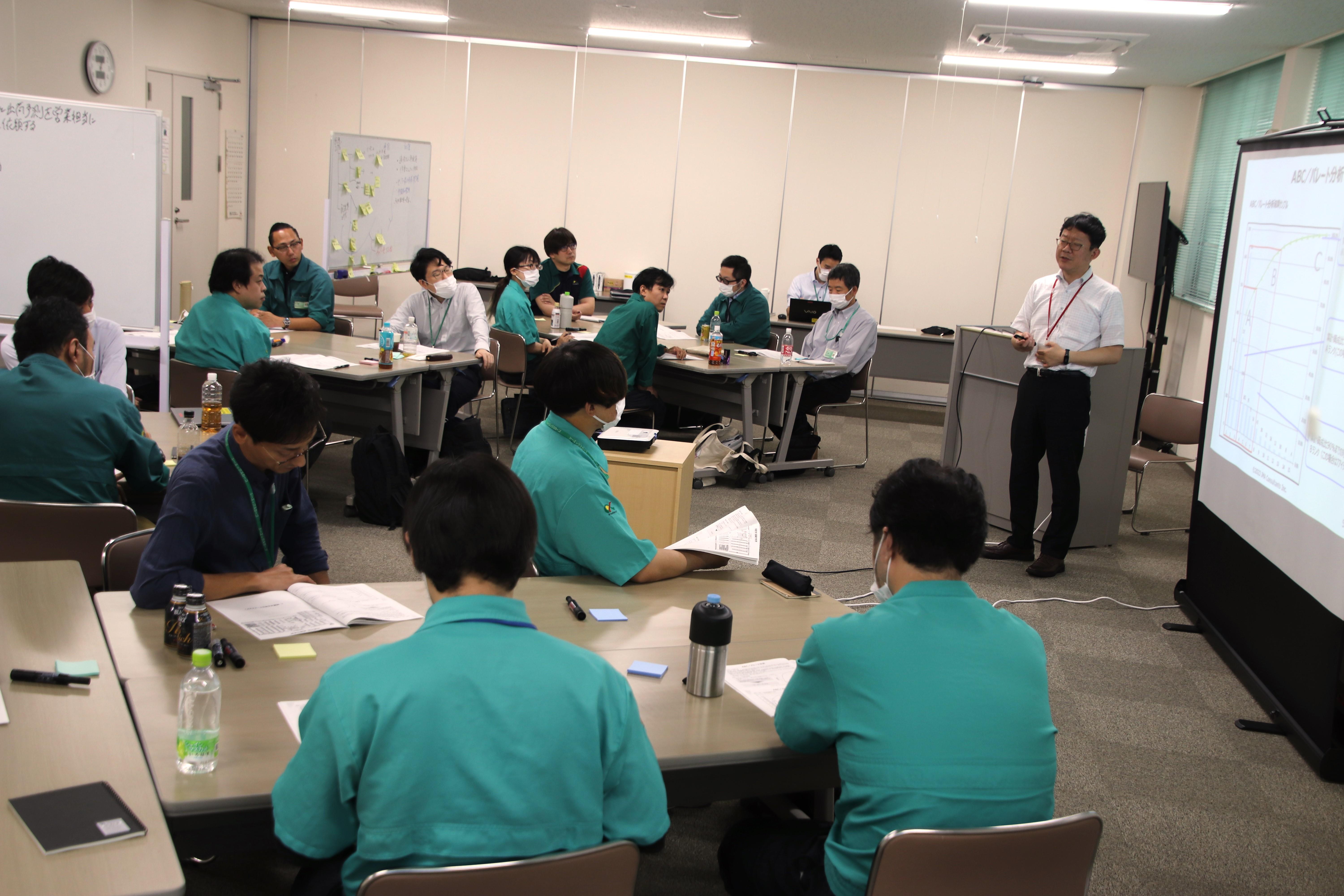 研修では、株式会社日本能率協会コンサルティング(JMAC)から講師をお招きし、座学とグループワークを実施。座学では、物流業界の動向や2024年問題についてを学び、グループワークではABC分析やワークサンプリングをグループ内のケーススタディで実施しました。主体的な改善活動を展開していくため、自身がどうあるべきか考える機会となりました。