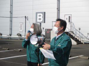 11月22日(水)、鳥栖冷凍流通センターにて、地震発生を想定した避難訓練を実施しました。訓練は13時からと18時からの2回に分け、それぞれ109人、74人が参加しました。