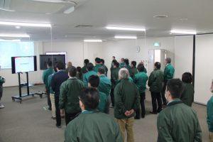 2024年1月8日(月)、全体朝礼を行いました。本社会議室と各営業所をオンラインでつないでの実施となりました。
