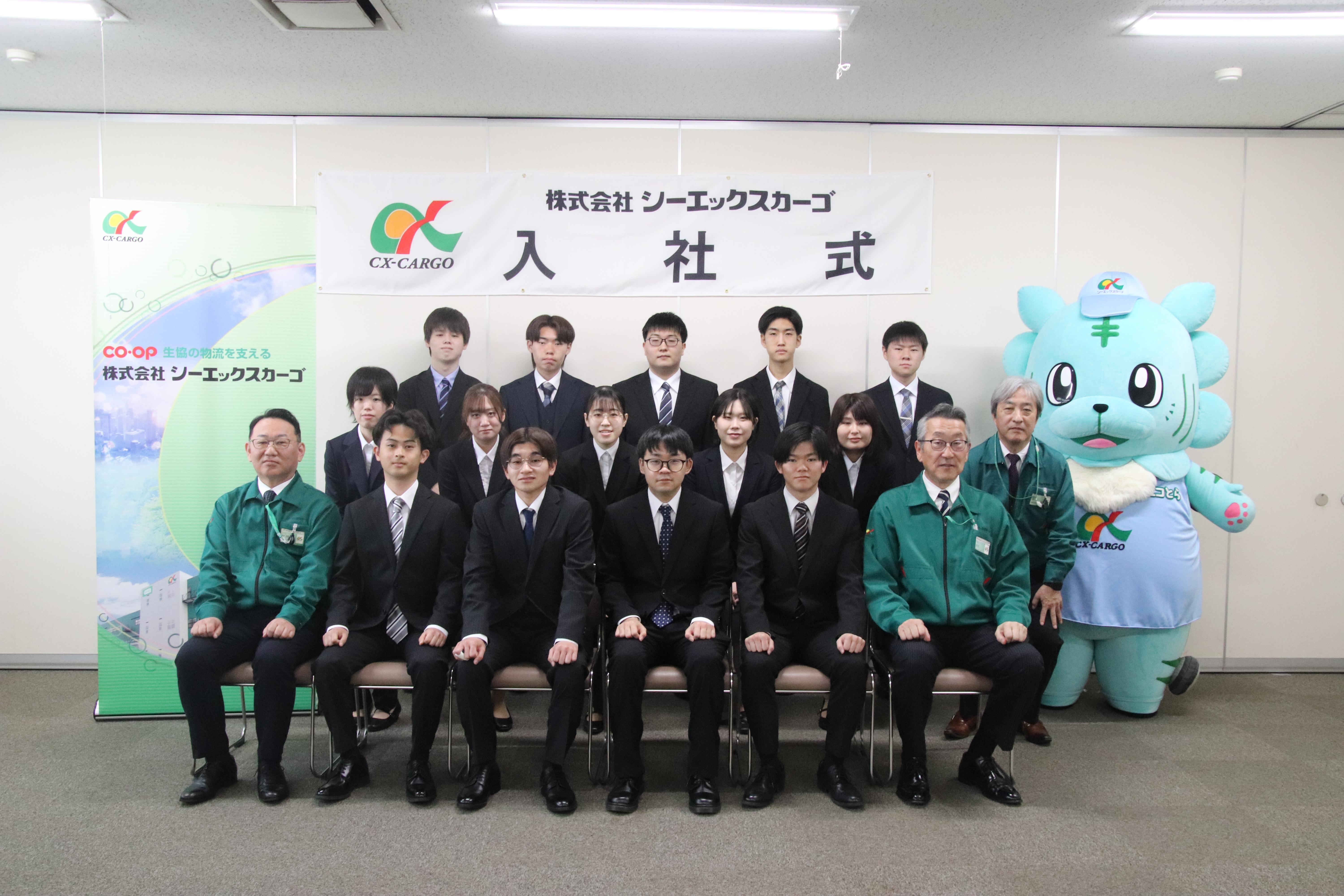4月1日(月)、本社にて新入社員14人の入社式を執り行いました。全国から集まった新入社員と役員・支店長(一部オンライン)などが一堂に会しました。社員一人ひとりに辞令交付を行い、新入社員代表より「新社会人としての自覚を持ち、経営ビジョンである貢献・信頼・誇り・挑戦を体現し、生協物流を支える人財になります。生協事業と消費者、組合員の暮らしに物流分野から貢献できるよう、会社と共に成長していきたいです。」と決意表明がありました。