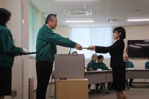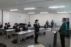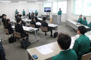 社長からは「今の物流業界は大転換期に入り、皆さんはその物流業を担うことになります。その中で自立・自律できるように頑張っていただきたい。これには時間がかかったり、失敗し落ち込むこともあるかもしれません。しかし、これらを経験し繰り返すことで人にやさしく、また成長することができます。皆さんは知らないことがあるので、学び知ることができる伸びしろがたくさんあります。毎日が成長のチャンスになります。上司・先輩・同僚をぜひ頼ってください。また、物流に興味を持っていただきたい。物流の社会的使命を学び、誇りをもって社会に貢献して挑戦してください。皆さんのフレッシュな考えが新たな風を吹かせてくれることを期待しています。」と歓迎と期待の言葉がありました。