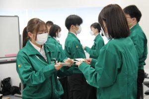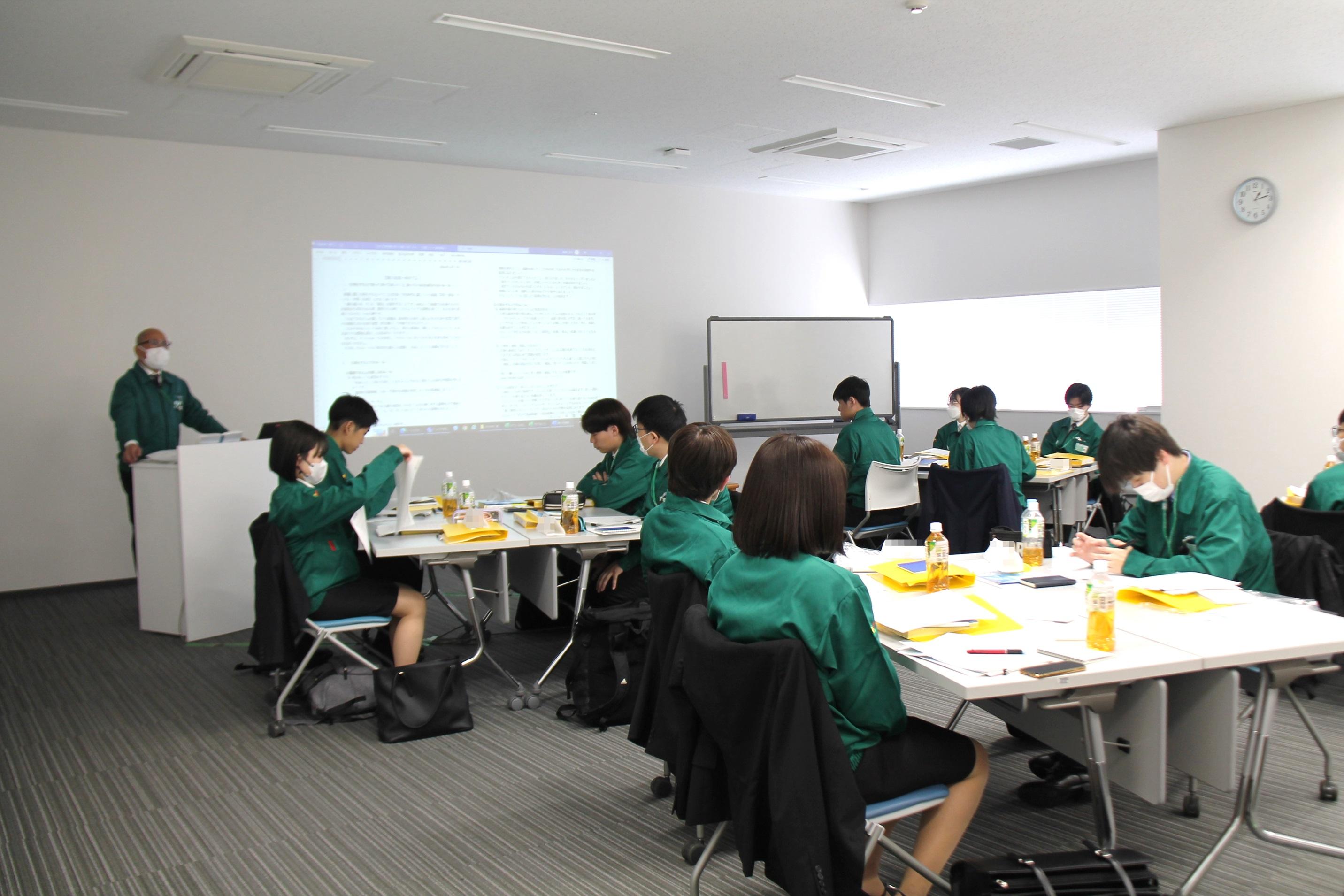 研修では、社会人として基本的なビジネスマナーを学び、取締役からの講話を受けて、学生と社会人の違いや当社の使命をグループワークなどで理解を深めていきました。また、先輩社員の経験談を聴き、交流をすることで、自身のキャリア形成についてイメージを深めていきました。最終日には、研修を通して学んだことを踏まえ、当社の社員としてどのように成長したいかを考え、研修の感想や1年後のありたい姿を各自で設定し、一人ひとりがプレゼンテーションを行いました。