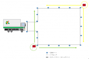 安全講習は「タコつぼタイムアタック」という名称で、16m四方のコースの中に大型車で侵入し、コース内で旋回後、同じ出入り口を頭から脱出する講習です。さらにタイムを競うことで、焦りの環境下で正確さをどれだけキープできるか、というハードルも用意されています。