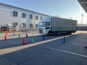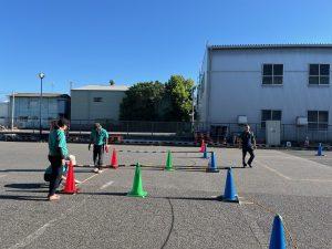 タイムアタック参加者は、大型車の全長が12mとなっているため、コース内で何度も切り返しを行い、車体の向きを何度も変えなければいけないため、オーバーハング、リヤオーバーハングの接触に注意を払い、正確な「認知」「判断」「操作」を繰り返し実践しました。