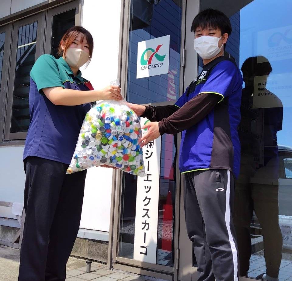7月に誉高等学校よりインターン受入実績のある企業に、ペットボトルキャップ寄付の声がかかり、小牧営業所内でキャップの回収をし、寄付を行いました。寄付したキャップは、誉高等学校の文化祭で活用されました。