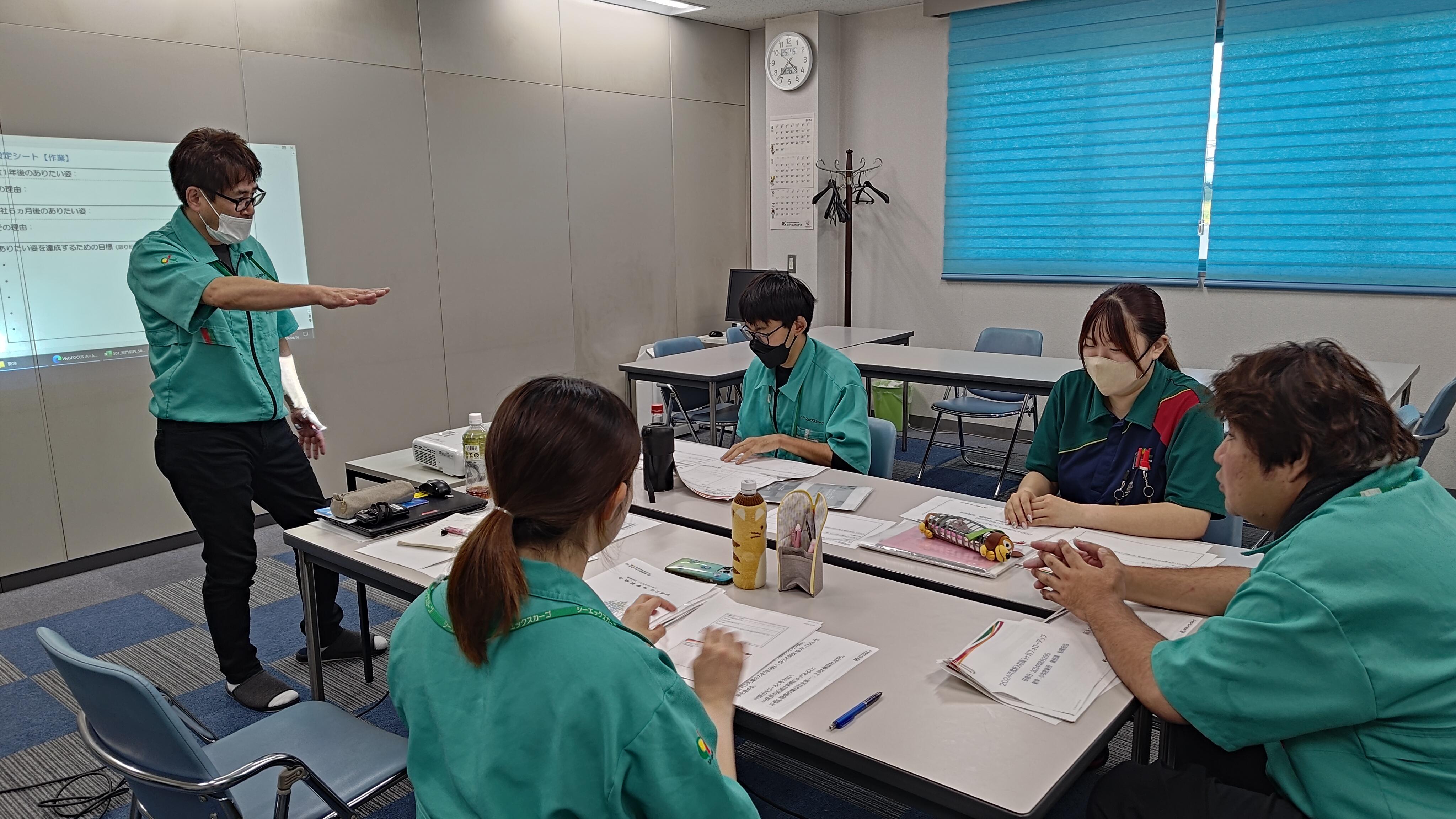 各事業所での研修では、上司や先輩社員が講師となり、過去の事業所内の事故事例をもとに労働安全の理解を深めたり、上手な伝え方をゲームを通じて体感するなど、独自の教育プログラムを実施しました。