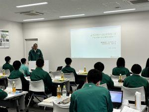 入社・交流会では、佐藤社長からの歓迎のお言葉や取締役による、物流業の使命や社員としての期待、キャリアについての講和が行われました。また、取締役との昼食会や桶川流通センターと桶川第2流通センターの見学会が行われ、シーエックスカーゴについての理解を深めました。