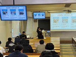 12月16日(月)、淑徳大学の「埼玉の企業研究」の講義で、シーエックスカーゴから人事部の課長と社員が講師として登壇しました。講義は経営学科の3年生を対象に行われ、当日は約50人の生徒が参加しました。