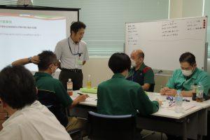 研修では運行管理者の役割・業務、車両事故の対応、点呼の重要性についてを個人ワーク・グループワークを交えながら学んでいきました。最後の交通安全特別強化月間に向けた目標の設定では「乗務員と向き合って安全第一に点呼をする」「後悔のない点呼をする」などそれぞれが考えた目標を一人一人が発表していき、運行管理者として何が必要なのかを学ぶことができたようでした。