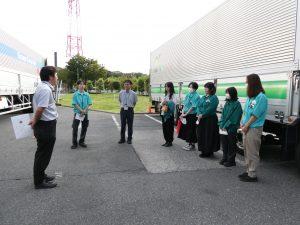 10月8日(水)~10日(金)に、桶川流通センターと本社の社員を対象に、大型トラックの死角・同乗体験を実施しました。この体験は、交通安全特別強化月間の取り組みの一環として実施され、「➀大型トラック周辺の死角を体感・体験する➁大型トラックの助手席に同乗し、桶川流通センター外周を走行する」ことを通して、日々の車や自転車の運転、歩行者の行動で気を付けるべきポイントを学びました。この体験には39人の社員が参加しました。