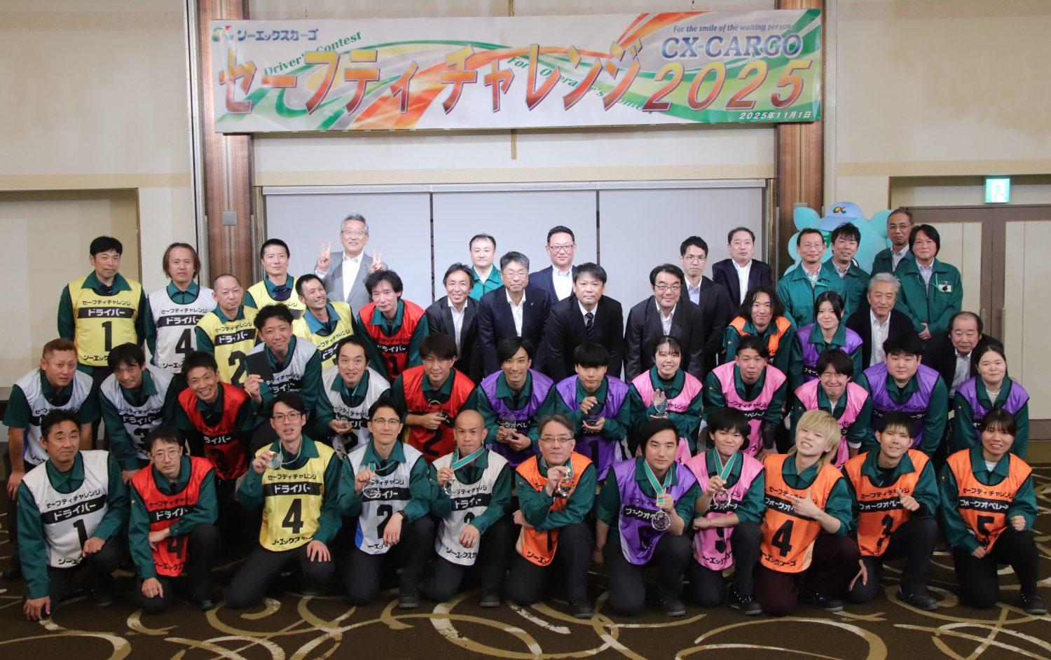 11月1日(土)、セーフティチャレンジ2025を開催しました。会場はドライバーコンテストを埼玉県トラック総合教育センター(埼玉県深谷市)、フォークオペレーターコンテストを行田フォークリフトセンター(埼玉県行田市)で行い、全国の事業所に在籍する370人のドライバー、587人のフォークオペレーターから選抜された代表32人(ドライバー17人、フォークオペレーター15人)が競技に挑みました。その後、別会場で全選手が集まり表彰式と懇親会を行い、選手同士の交流を深めました。