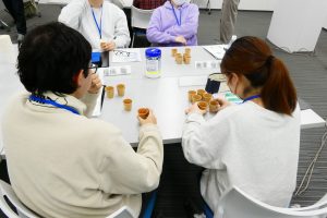今回は、桶川第2流通センターの見学、交流ゲーム、配属先内示、キャリア紹介を行いました。センター見学では、通販事業の仕組みを学び、改めて当社の事業理解を深めることができました。また、職場環境や入社後の仕事内容などの具体的な説明も行い、視点を変えて見学することができました。交流ゲームでは、チーム対抗戦でCO・OP商品とNB商品の食べ・飲み比べゲームを行い、迷いながらもチームで協力し合い、答えを導き出す姿が見られました。配属先内示では、一人ひとりに配属部署が伝えられ、期待と不安が入り混じるような緊張感に包まれました。