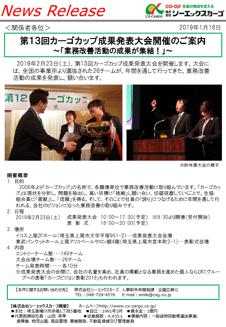 第13回カーゴカップ成果発表大会開催のご案内~「業務改善活動の成果が集結!」~