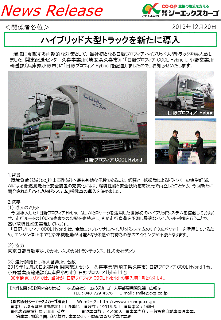 ハイブリッド大型トラックを新たに導入