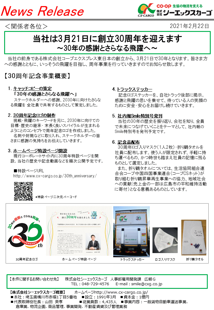 当社は3月21日に創立30周年を迎えます