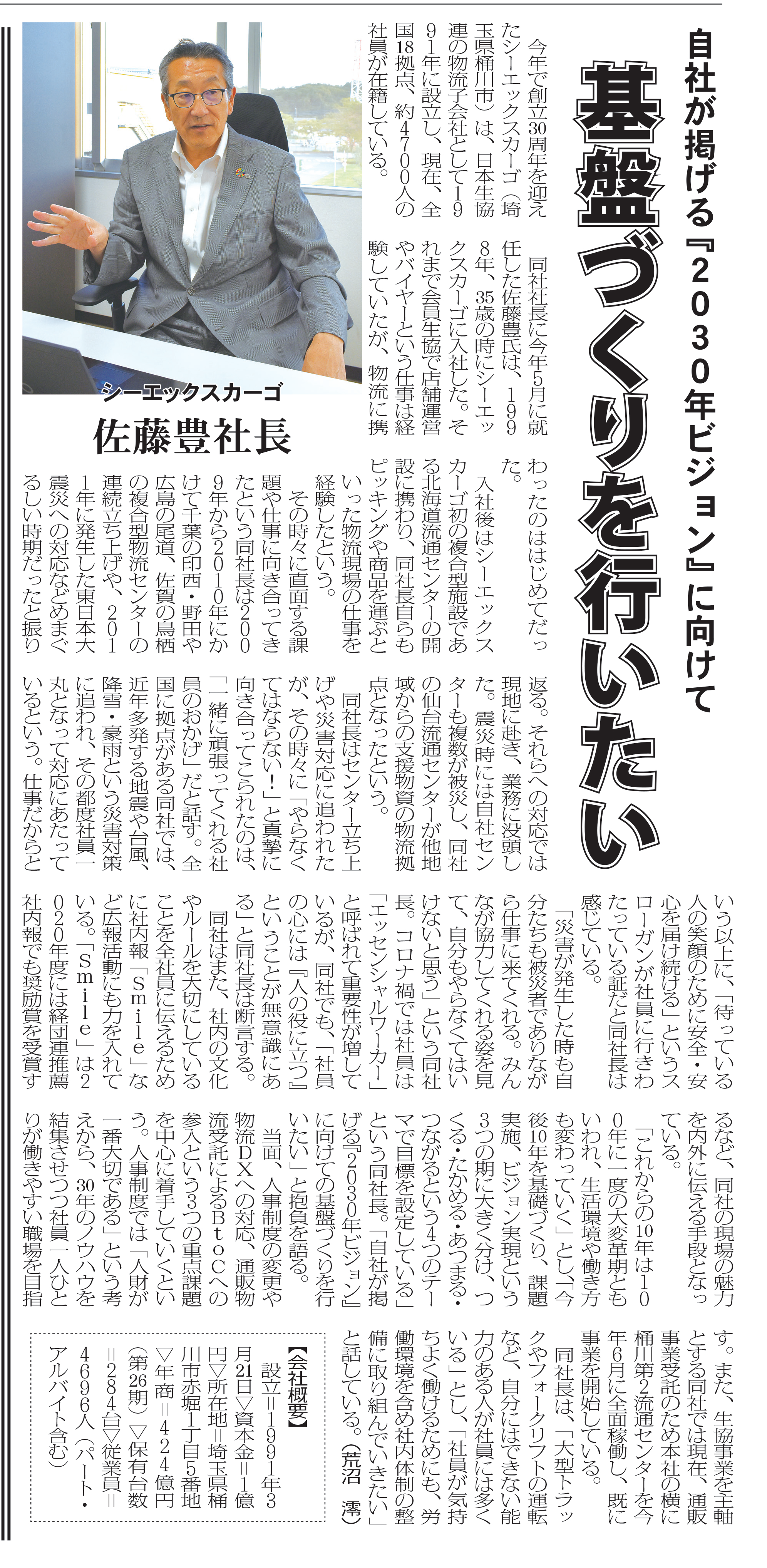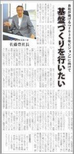 当社社長が取材を受け、インタビューが新聞に取り上げられました。