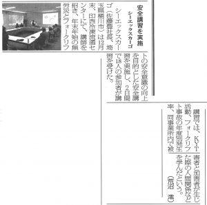 印西冷凍流通センターで実施した安全講習について、新聞に取り上げられました。