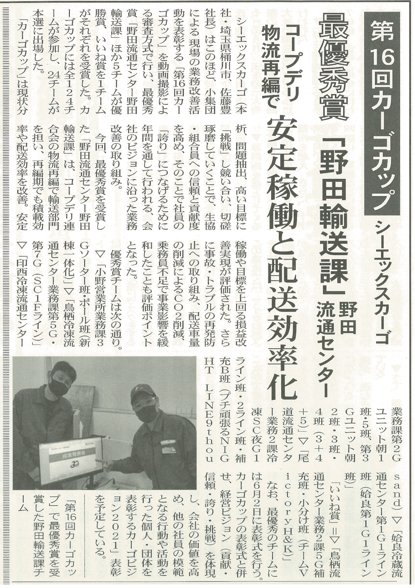 カーゴカップの表彰について、新聞に取り上げられました。