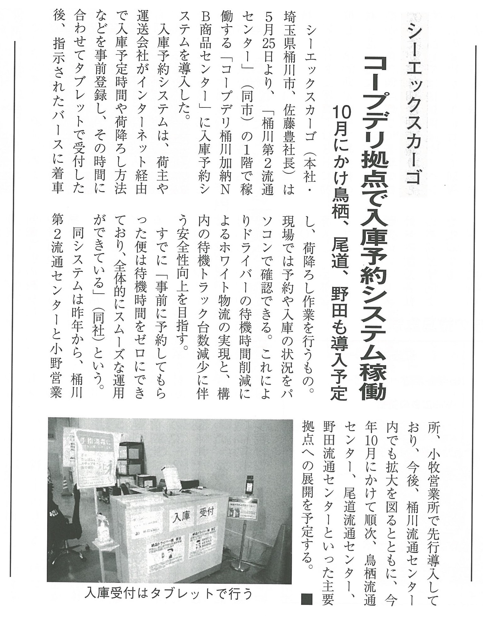 当社が導入した、入庫予約システムについて、新聞に取り上げられました。