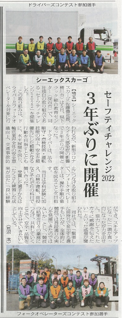 当社のセーフティチャレンジ2022開催について、取り上げられました。