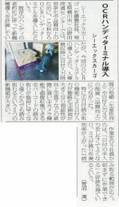 当社が導入したOCRハンディターミナルについて、新聞に取り上げられました。
