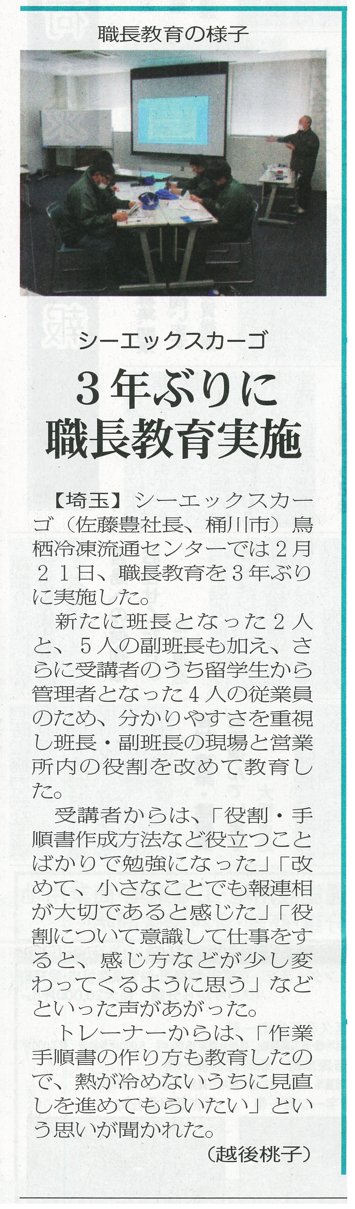 鳥栖冷凍流通センターの取り組みについて、新聞に取り上げられました。