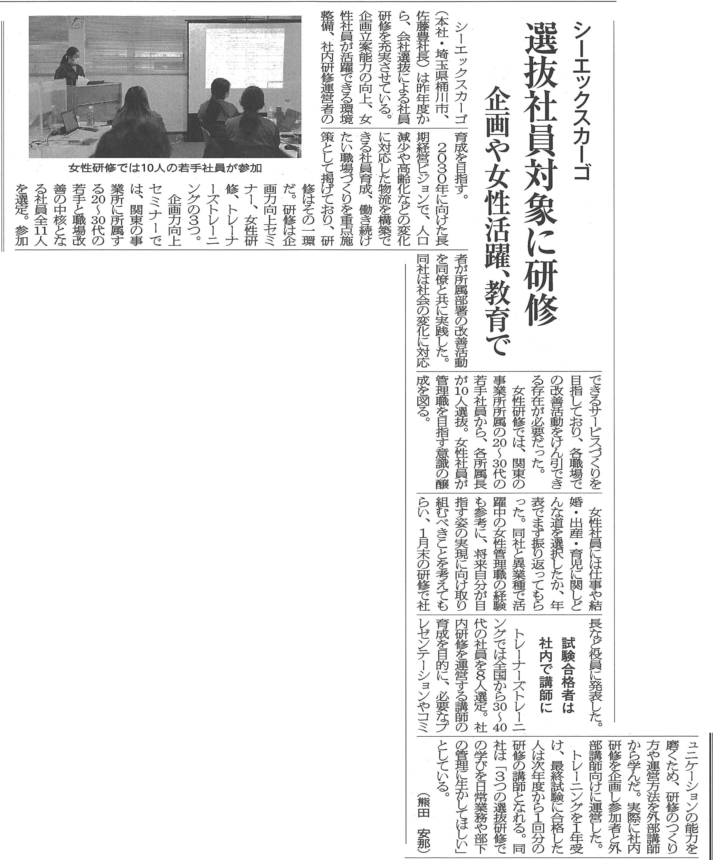 当社の研修について、新聞に取り上げられました。