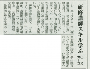 当社の研修について、新聞に取り上げられました。