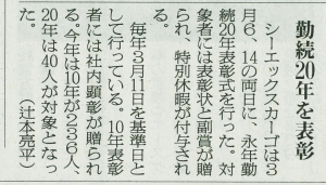 当社の勤続表彰について、新聞に取り上げられました。