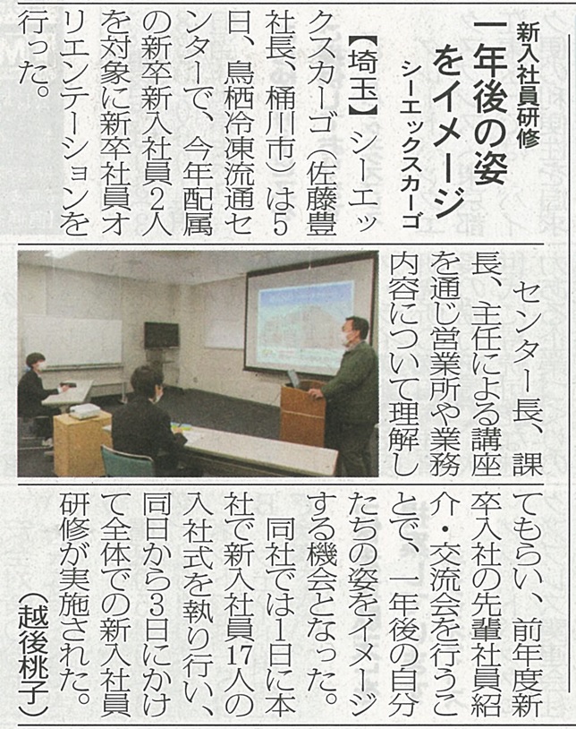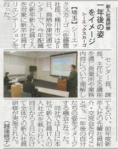 鳥栖冷凍流通センターで実施した新入社員研修について、新聞に取り上げられました。