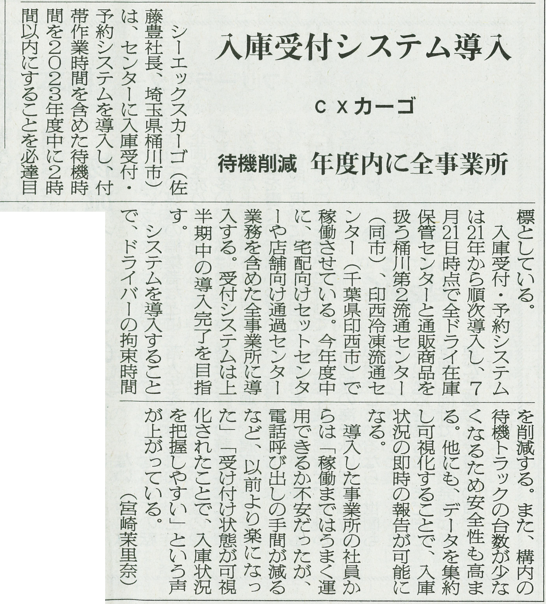 当社で導入した入庫受付システムについて、新聞に取り上げられました。