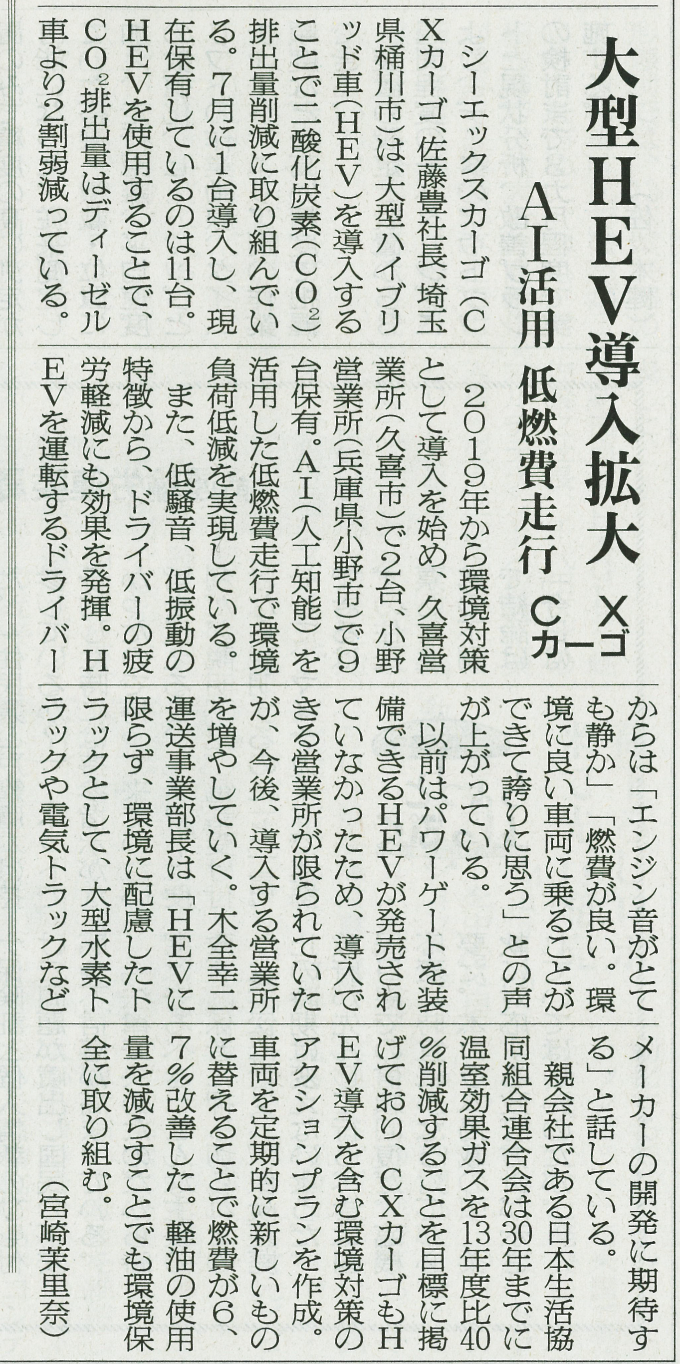 大型HEVの導入について、新聞に取り上げられました。